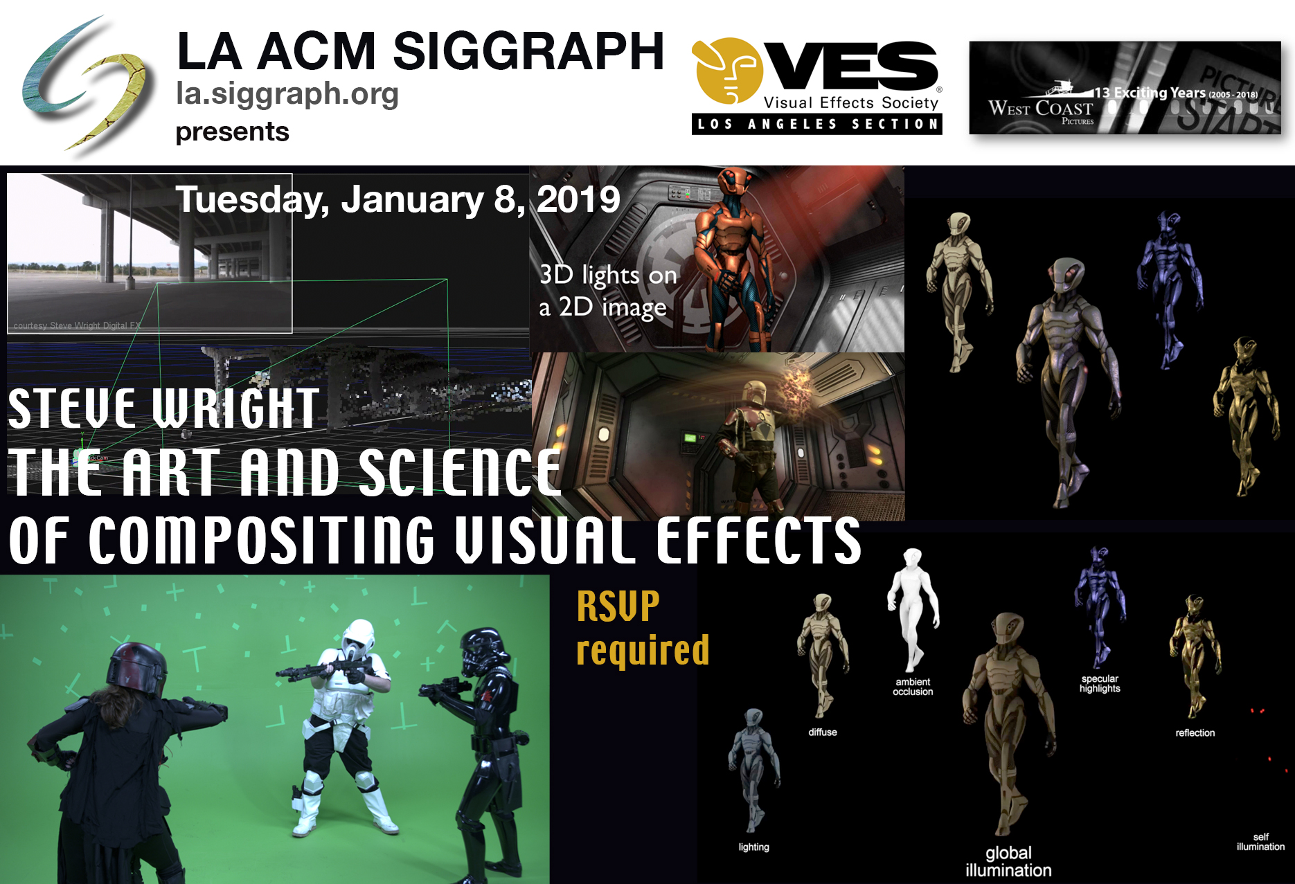 Steve Wright returns to LA to give an in-person overview of VFX compositing techniques to those artists who RSVP to deepen their understanding of its critical role in visual effects. RSVPs are required.