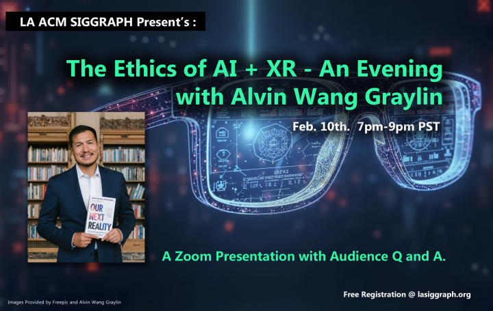 There'll be plenty of Q&A time for audience discussion. This will be the LA ACM SIGGRAPH Meeting of 2026 on AI that you won't want to miss!
